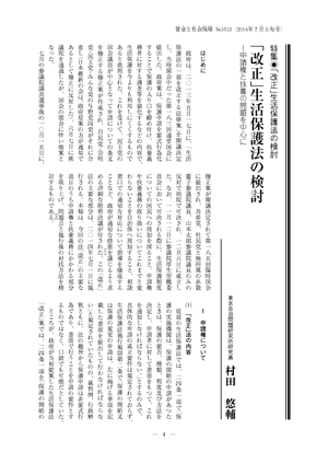 村田悠輔「『改正』生活保護法の検討」(賃金と社会保障1613号=2014年7月上旬号)およびその関連資料